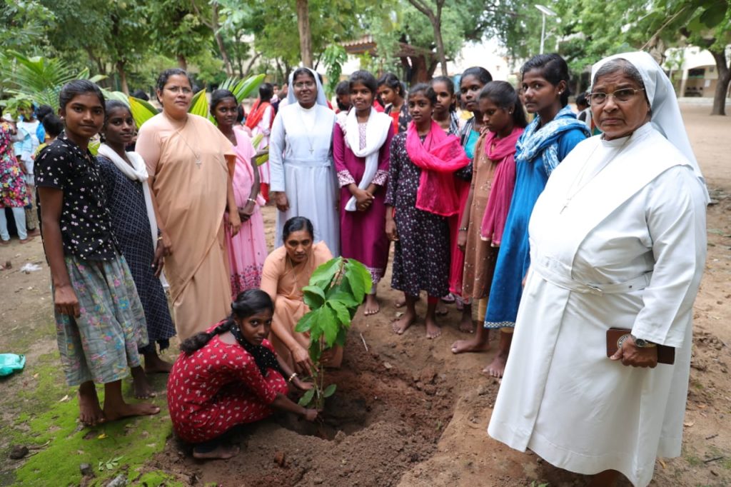 with the privilege of planting saplings, accompanied by the Sisters of the community, serving as a